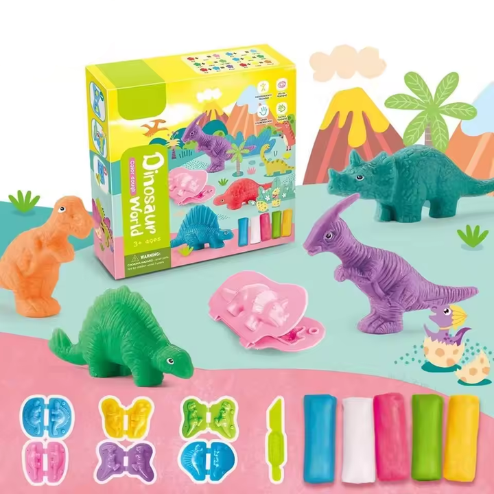 Kids Dino Modeling Clay – Natural Playdough with Dinosaur Molds