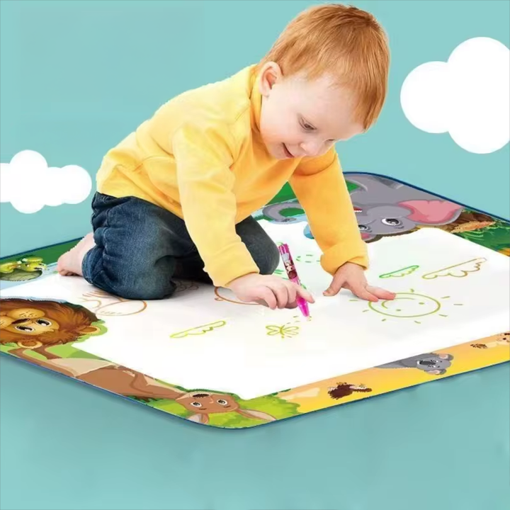 Spark endless creativity with the Extra-Large Magic Water Doodle Mat — the ultimate mess-free art toy that lets kids draw, paint, and explore their imagination using nothing but water. Designed to keep playtime clean and fun, this mat transforms any floor or table into a colorful canvas where children can express themselves freely. The magic ink disappears in minutes, giving them a fresh start every time they draw.