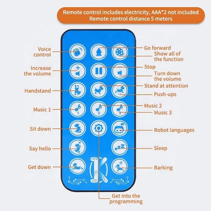 Multiple Functions: Dances, walks forward, auto demos, sits, crouches, handstands, push-ups, barks, and more