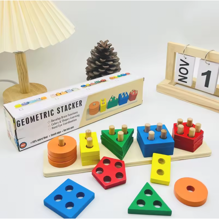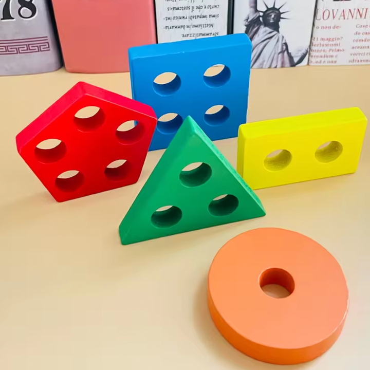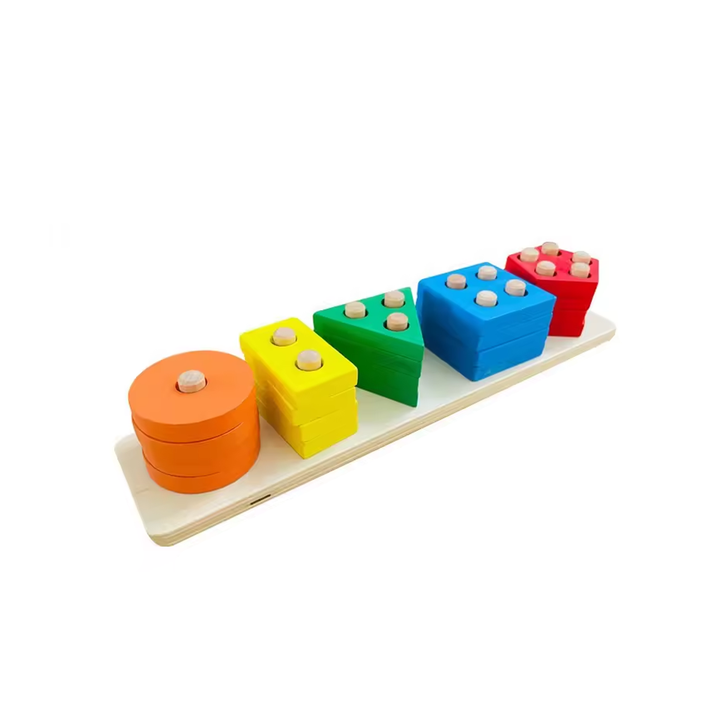 Wooden Shape & Color Matching Educational Blocks - Wooden Stackers